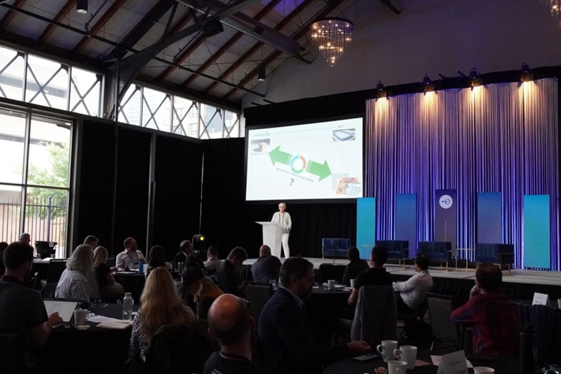 Wednesday shifted to the main stage in Great Northern. The day explored big-picture thinking, from a look at the next 5-10 years of technology to panels on design trade-offs and supply chain evolution. Corey Dehmey opened by setting a challenge for the industry with SERI's 10/35 vision: all electronics should have a minimum 10-year lifecycle by 2035, and at the end of that lifecycle, all materials get reused. The vision sparked conversations throughout the day, with speakers and attendees talking about what infrastructure, design changes, and business models would need to evolve to make this a reality.