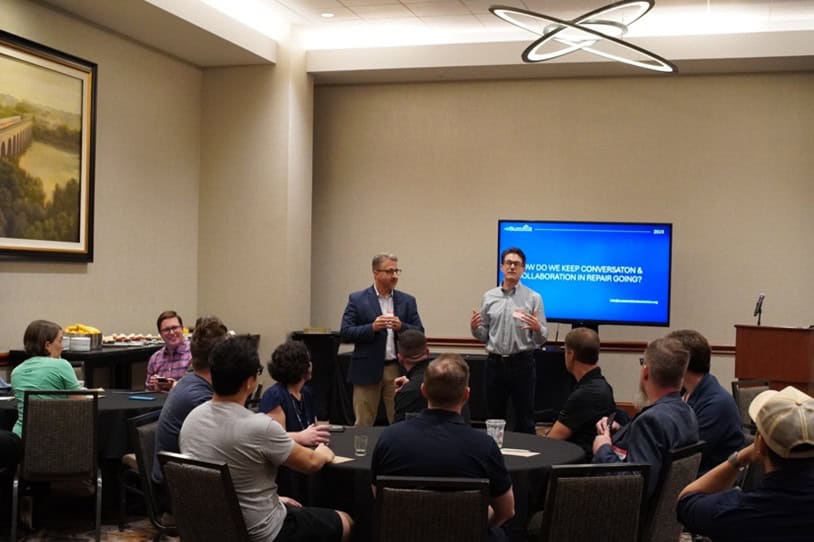 I was personally looking forward to being on-call support for The Repair Meetup that day, led by Scott Shackelford from Google and Corey Dehmey from SERI, which was a fun, informal, and open dialogue about what's working and what isn't in the electronics industry. Over coffee and snacks, roundtable discussions worked through focused prompts like the hardest components to source, essential tools OEMs could provide, business improvements that would boost efficiency, criteria for repair decisions, and opportunities for the near future. At the end of the session, everyone was eager to continue the conversations and even suggested setting up a Repair Pro Discord server to stay connected after the conference. Send me an invite!